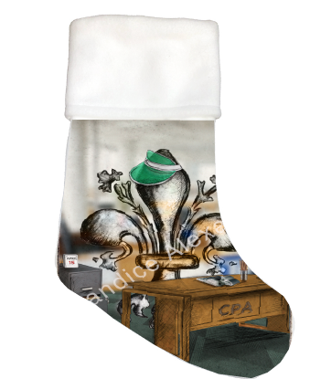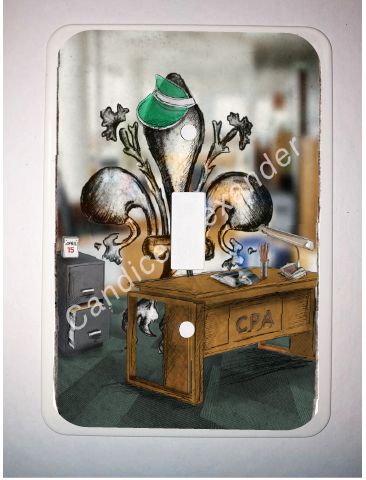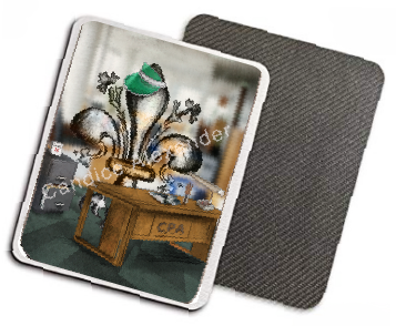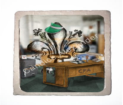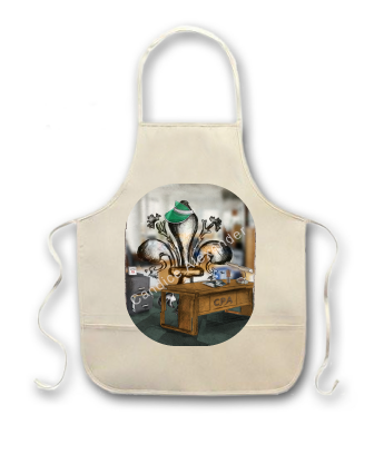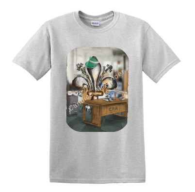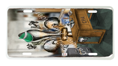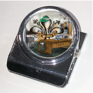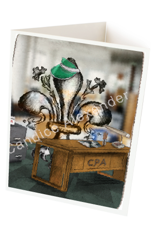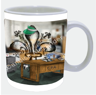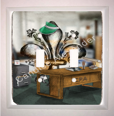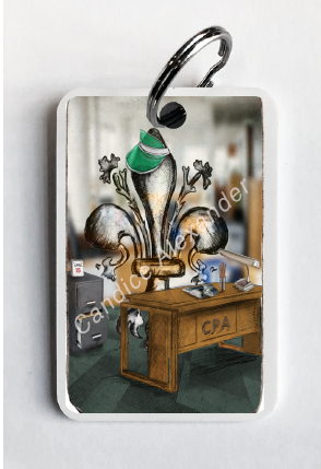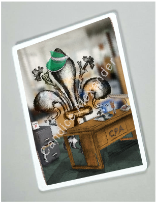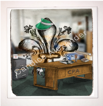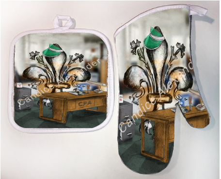 "Accountant" is a fleur de lis design by Candice Alexander depicting a CPA desk and a hardworking fleur de lis on April 15th.