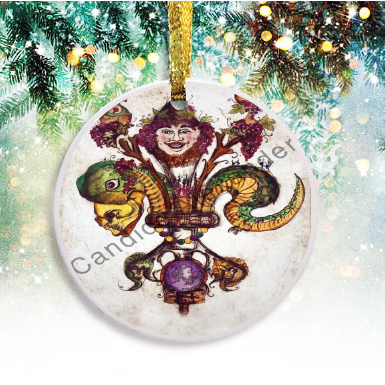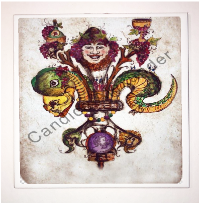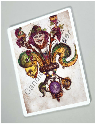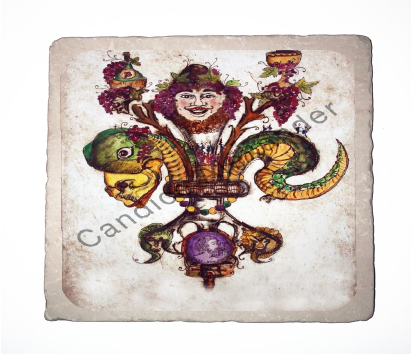 "Bacchus" is a fleur de lis design by Candice Alexander that was created to represent was the god of the grape harvest, winemaking and wine, of ritual madness and ecstasy in Roman mythology. This design was commissioned by the Krewe of Bacchus in New Orleans.
