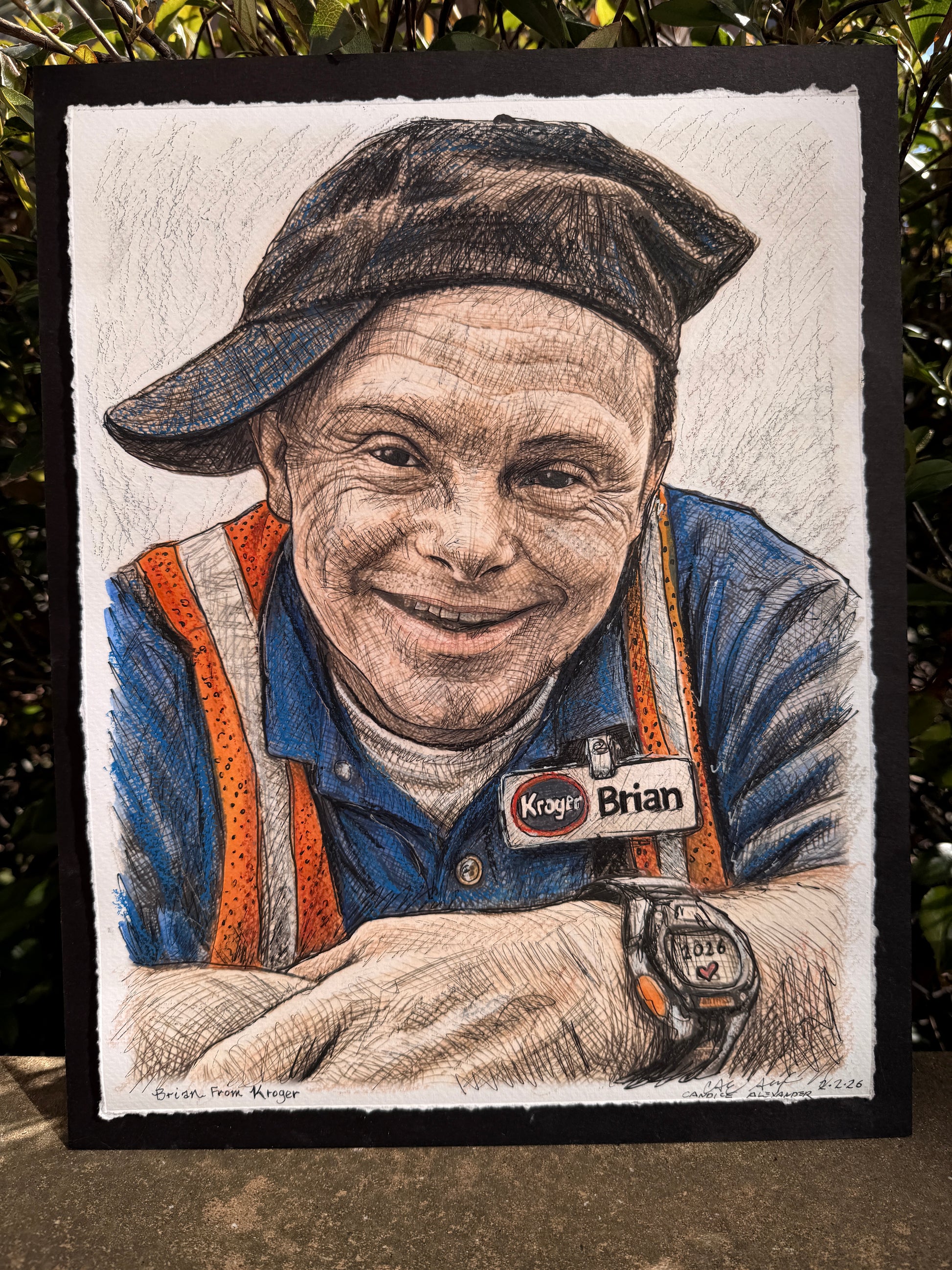 Brian’s uniform, name tag, and gentle expression situate him firmly in the everyday. This is not a portrait of fame, but of faithfulness. Of showing up. Of love practiced daily, over a lifetime.