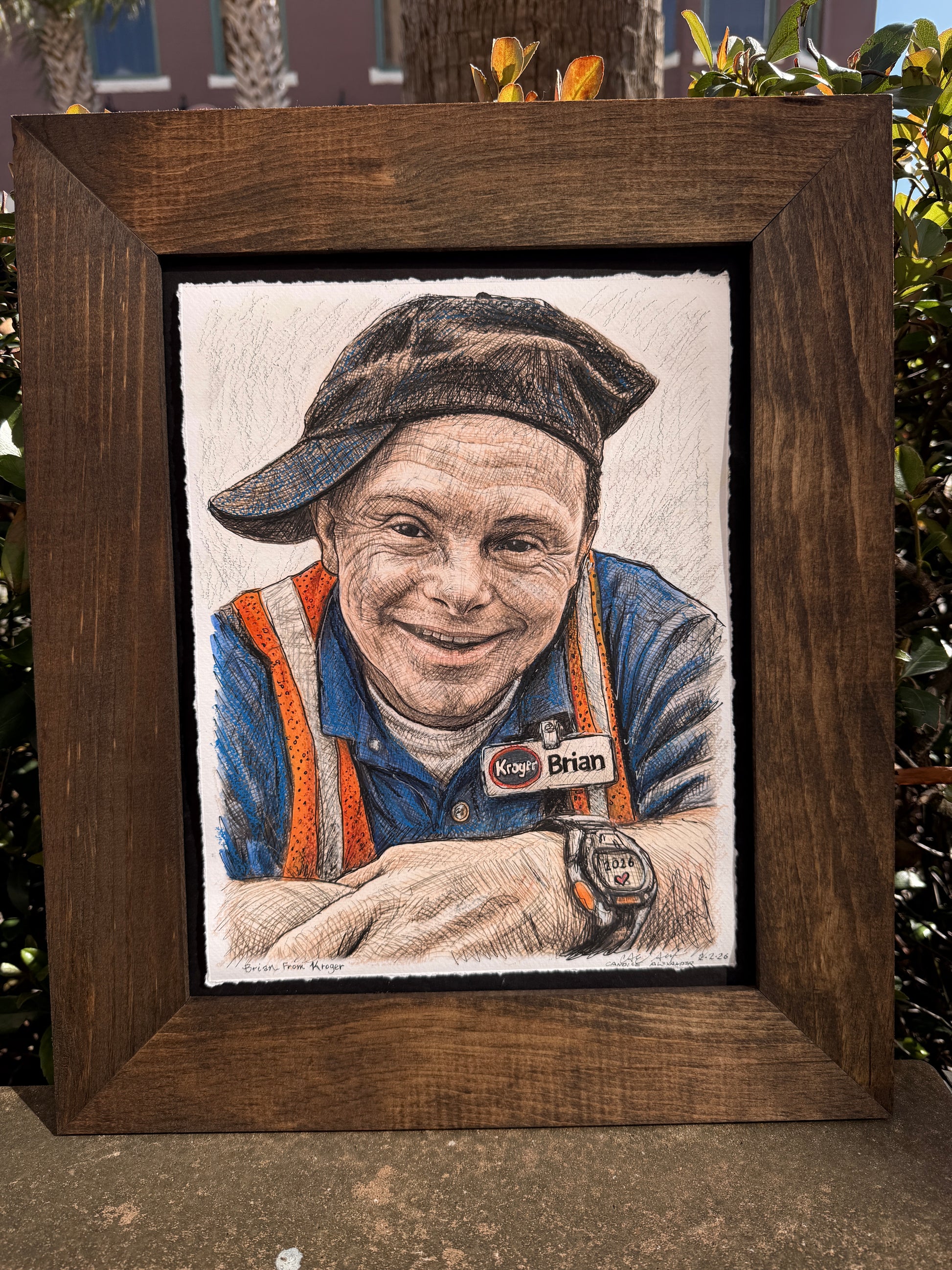 Brian is not depicted as an idea, a symbol, or a story about what may come. He is rendered as he is — present, open, and unmistakably human. The drawing focuses on what cannot be measured: kindness held in the eyes, familiarity in posture, joy that rests comfortably in the body.