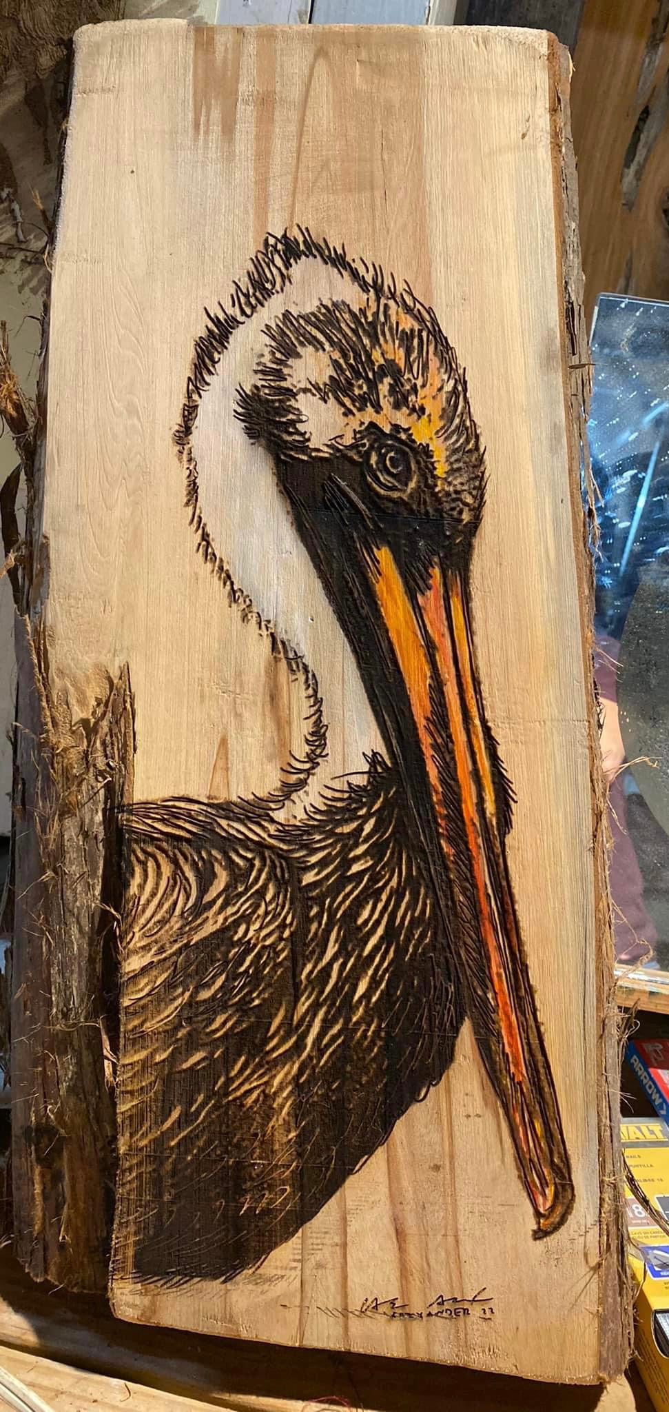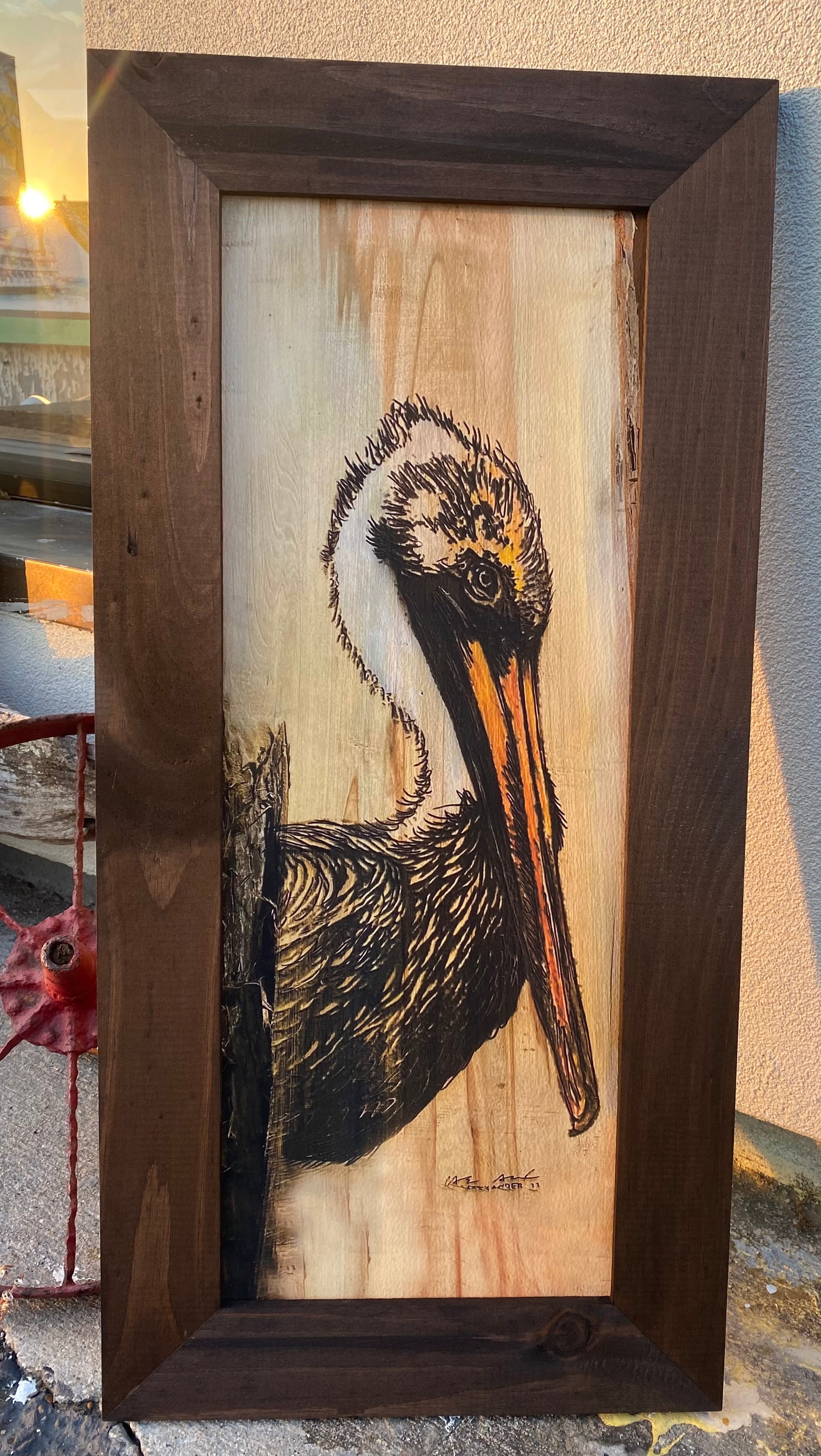 This is a print version of the original Brown Pelican Wood Engraving on Louisiana Cypress.