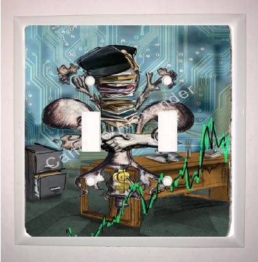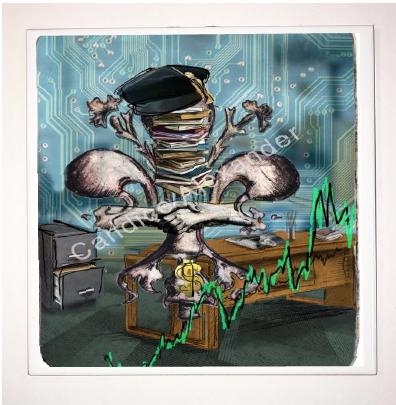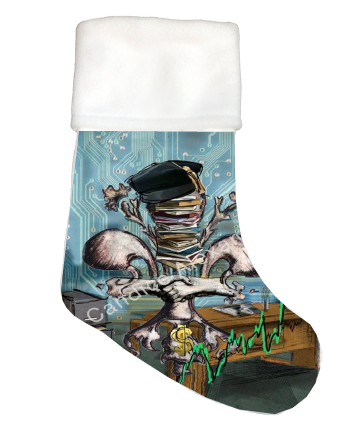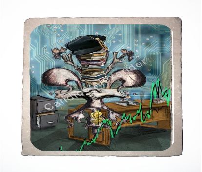 "Business" is a Fleur De Lis design by Candice Alexander that depicts an office background with a central fleur stacked with books and the traditional graduation cap of business majors along with shaking hands, a symbol of trust between the business owner and client.