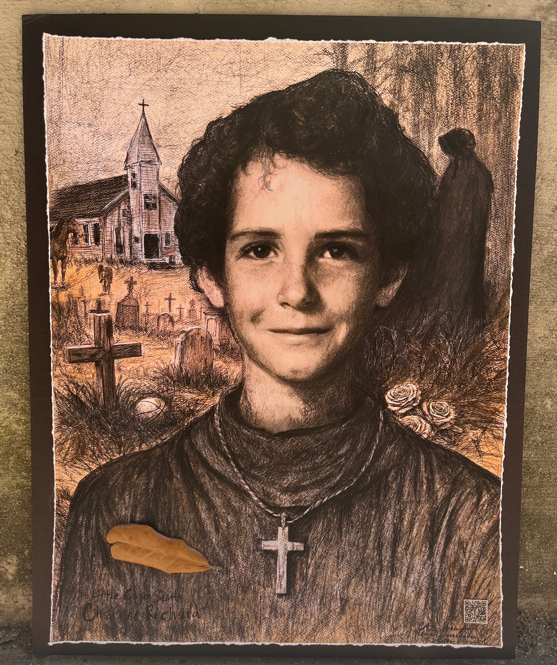 This drawing is a quiet tribute to Charlene Richard, the “Little Cajun Saint” of Louisiana. Charlene lived a short life marked not by spectacle, but by extraordinary interior strength, humility, and love. During her illness, she offered her suffering for others, becoming a source of peace and hope to nurses, doctors, family members, and all who crossed her path. Rendered in raw cross-hatching and notebook lines, this piece reflects the simplicity of Charlene’s life and the depth of her spirit. There is no attempt to idealize or elevate—only to listen. To sit with her presence. To honor the quiet power of a young girl who carried grace without asking to be seen. This work was created not as a declaration, but as an act of reverence. Some lives leave behind more than stories—they leave behind light. Charlene Richard is one of them.