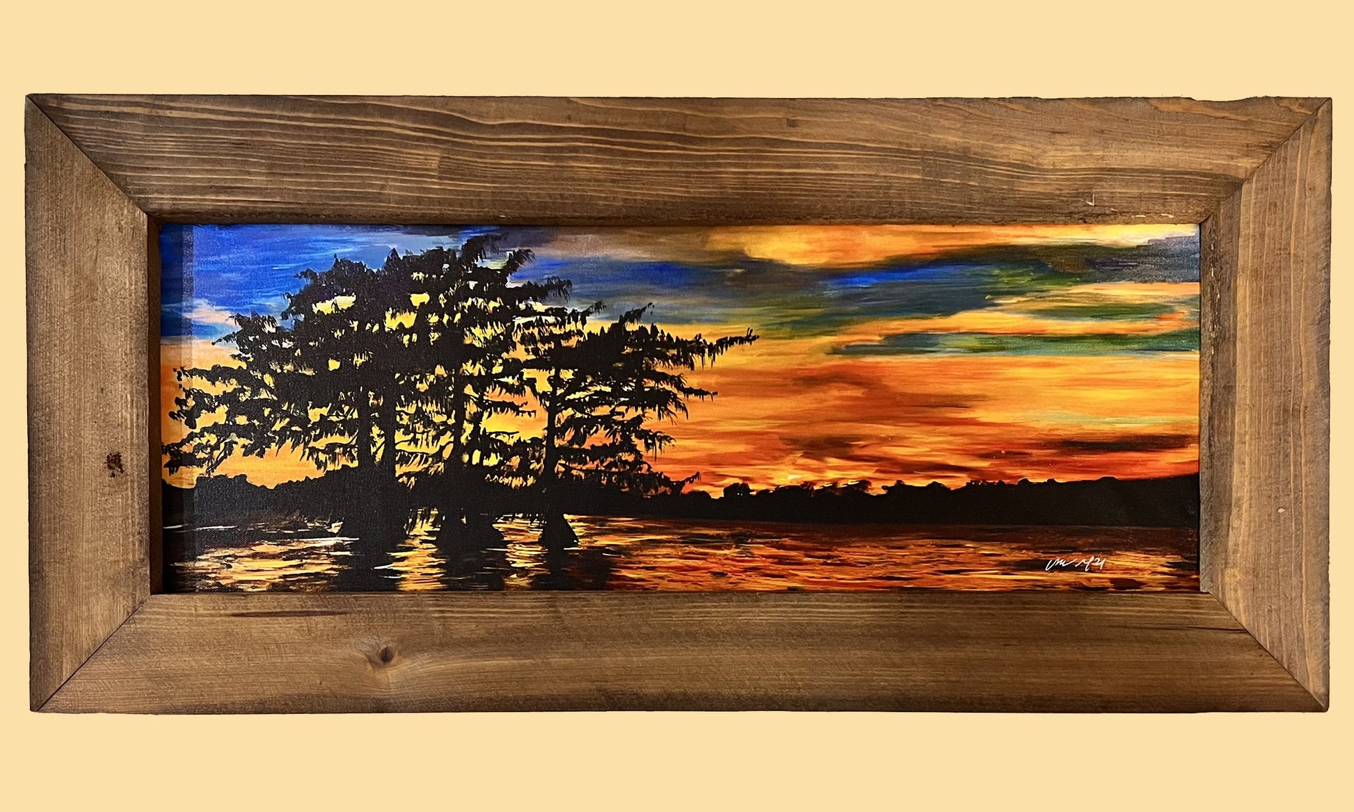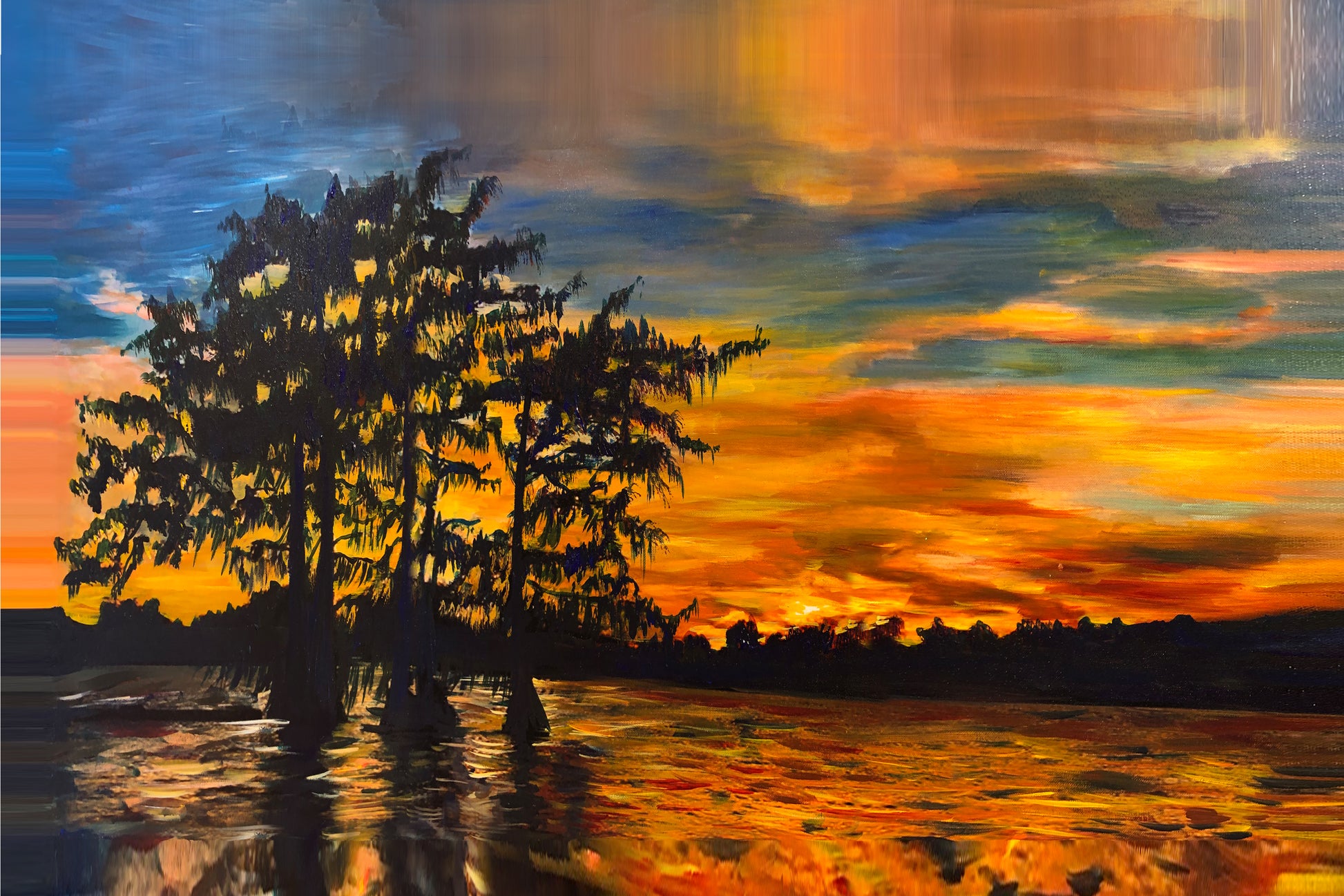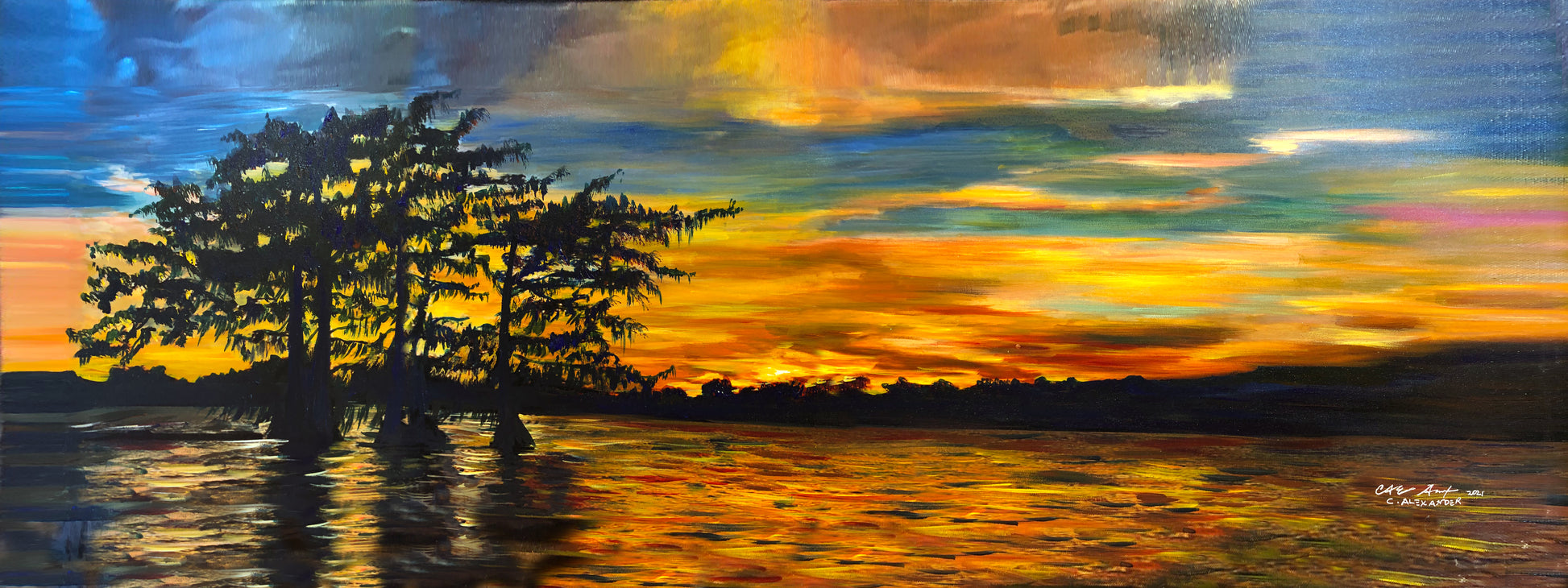 The Atchafalaya Basin is the largest river swamp in the United States, containing almost one million acres of the nations most significant bottomland hardwoods, swamps, bayous and backwater lakes. The basin begins near Simmesport, La., and stretches 140 miles southward to the Gulf of Mexico. Candice captures a sun setting over the basin, with the well-known cypress trees fixed over the water.