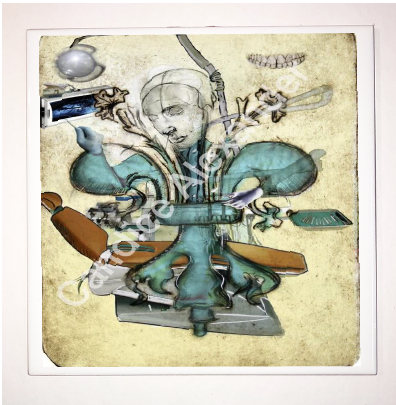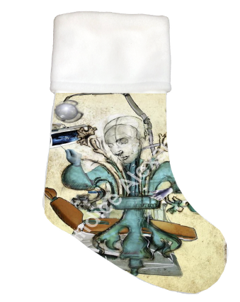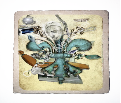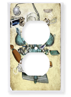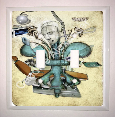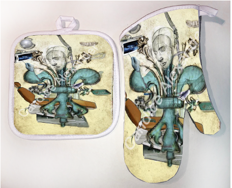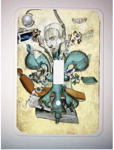 "Dentist Female" is Fleur De Lis design by Candice Alexander that targets the profession of a dentist with a central fluer in scrubs and additional elements such as the dentist chair, lights, mask, and smile.