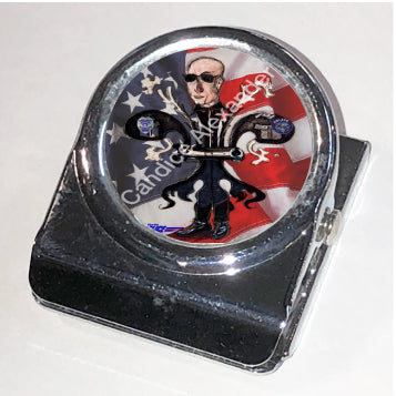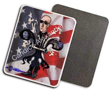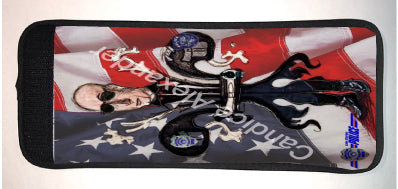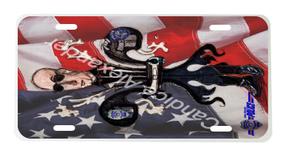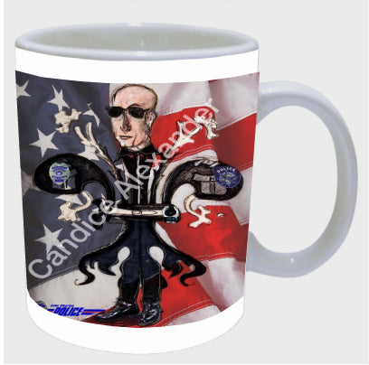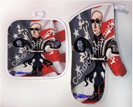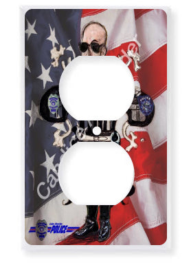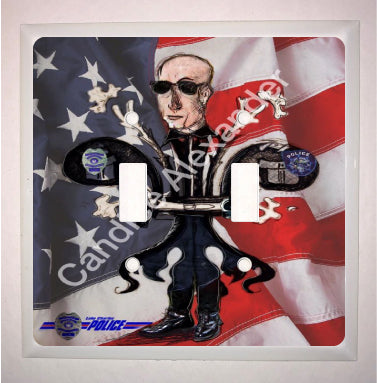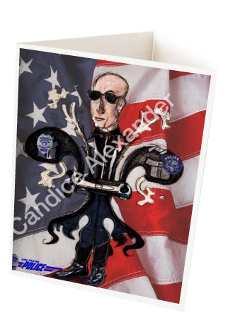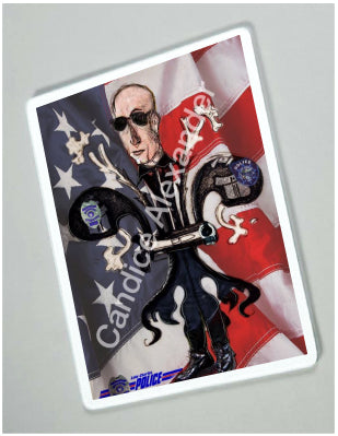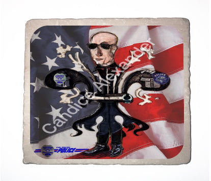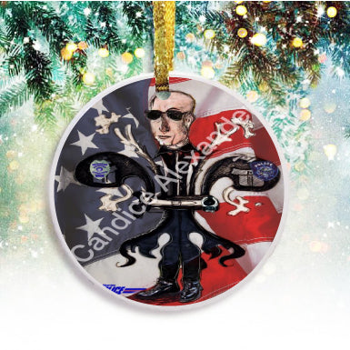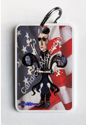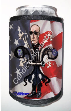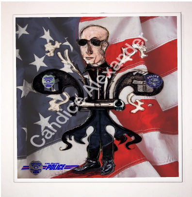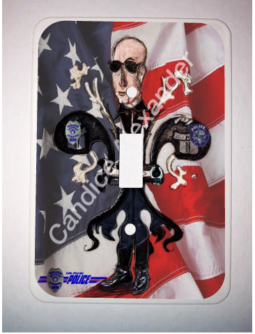 "Lake Charles Police Two" is a Fleur De Lis design by Candice Alexander honoring the Lake Charles Police Department with an America flag background and central officer fleur in full uniform.
