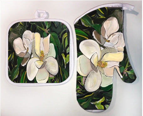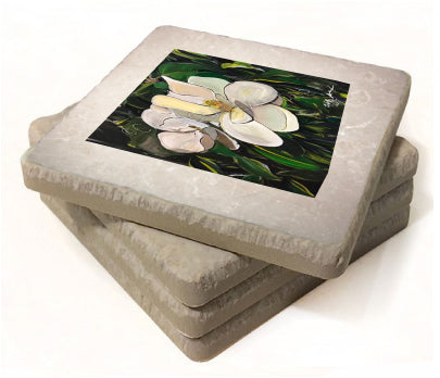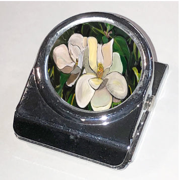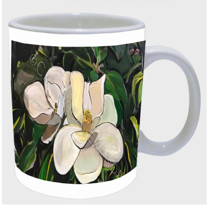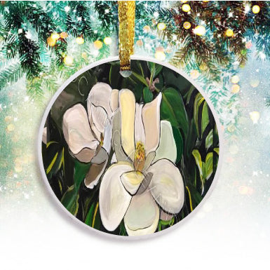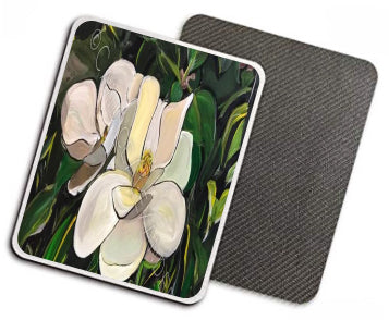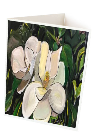 "Magnolia" is a Candice Alexander Design featuring a pair of soft white magnolias on a bed of deep green foliage.