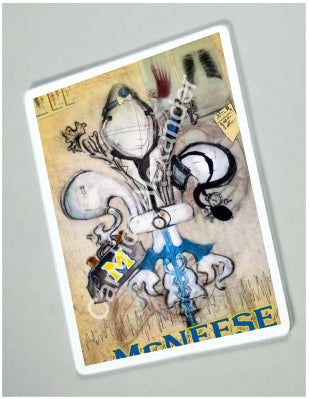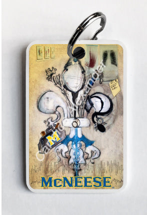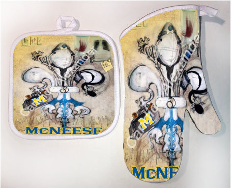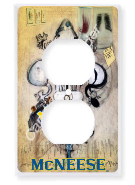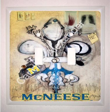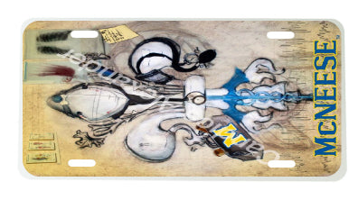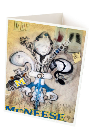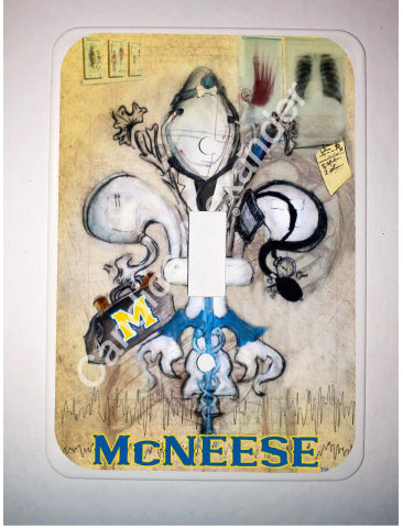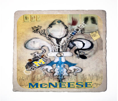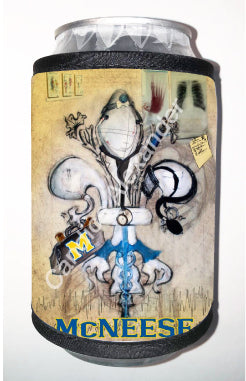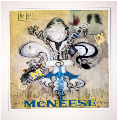 "McNeese Doctor" is a fleur de lis design by Candice Alexander that honors the profession by utilizing related imagery such as a stethoscope, blood pressure cuff, medical bag, and X-rays.