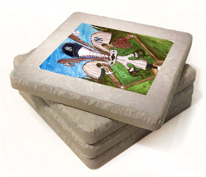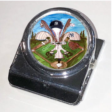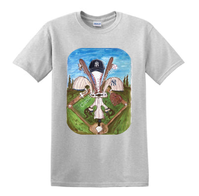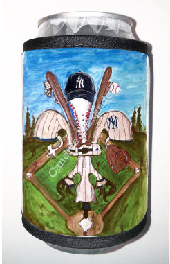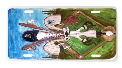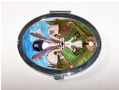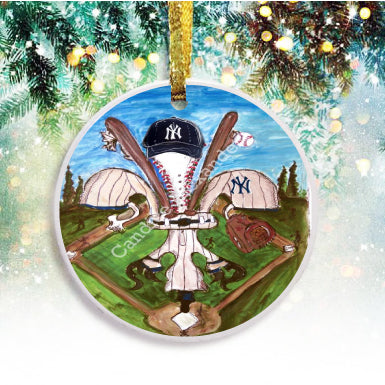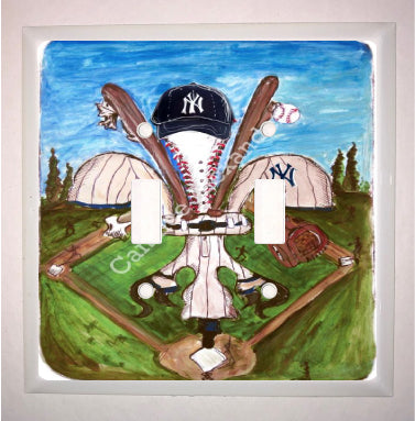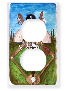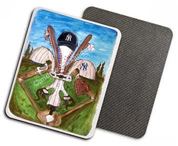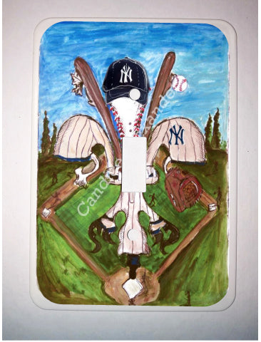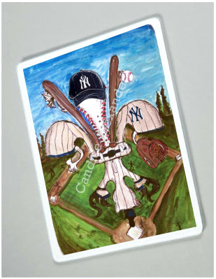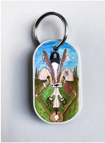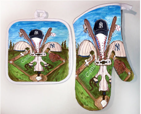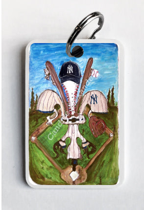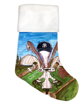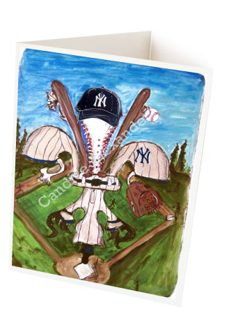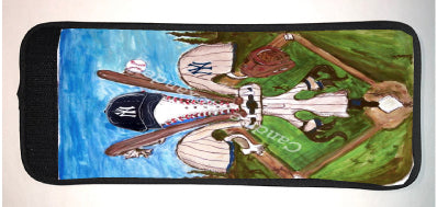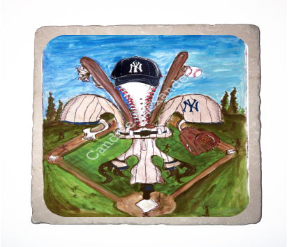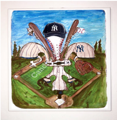 "New York Yankees" is a fleur de lis design by Candice Alexander that sports a baseball diamond background and a central fleur de lis that is wearing the classic Yankee uniform and hat.