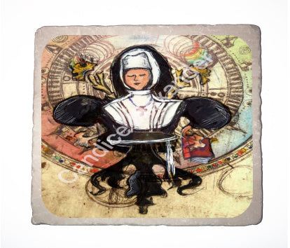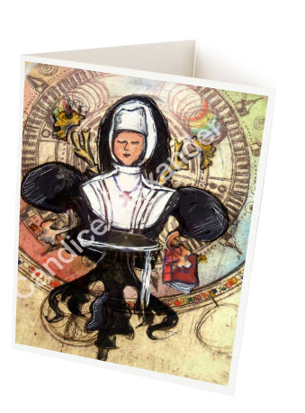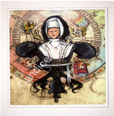 "Sister-Nun" is a Fleur De Lis design by Candice Alexander representing a woman whom is a member of a religious community of women, typically one living under vows of poverty, chastity, and obedience.