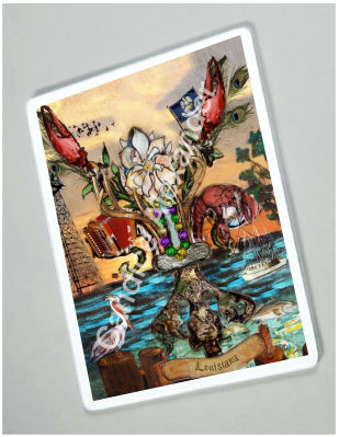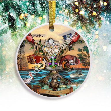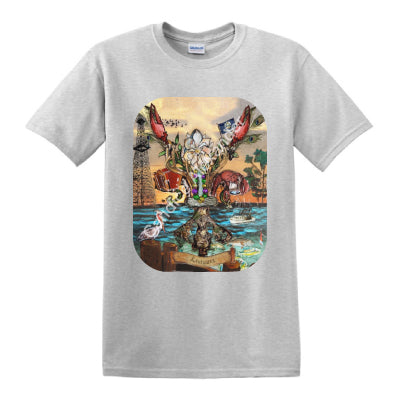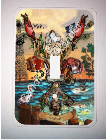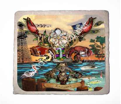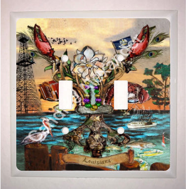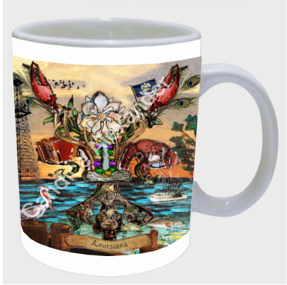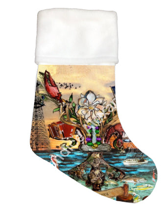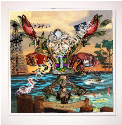 "Special What we Love" is a Fleur De Lis design by Candice Alexander that is intended to represent the south with a bayou landscape scene and a central fleur embellished with an array of Louisiana imagery.