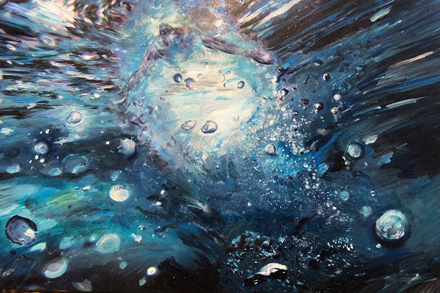 This is a piece I created when I awakened one day from a peaceful state. A meditation. I was underwater. A foreign flash of water, bubbles, blue and I woke up.