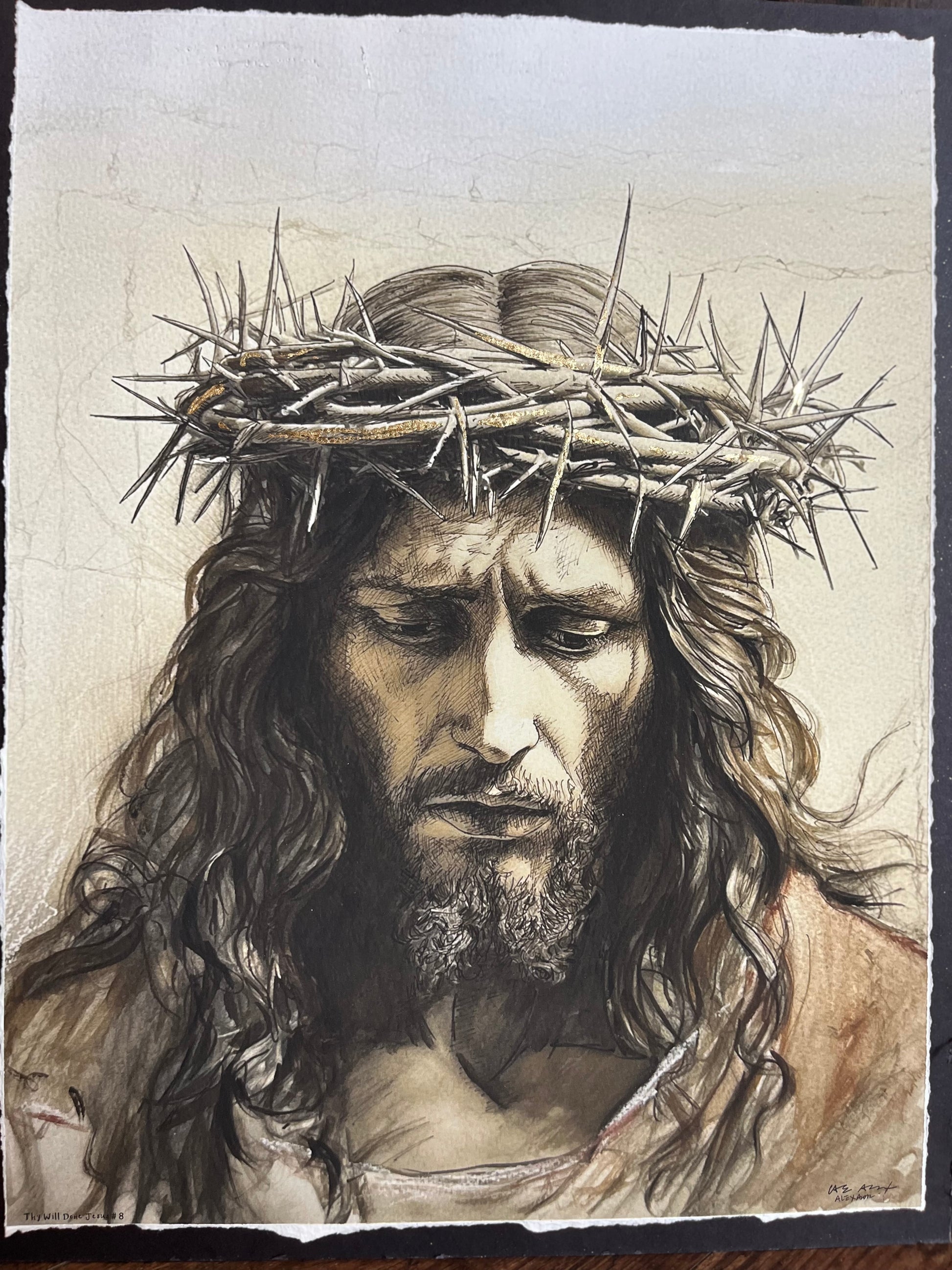 St. Jude, in watercolor, pencil, and ink. Stained with Community Coffee.