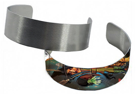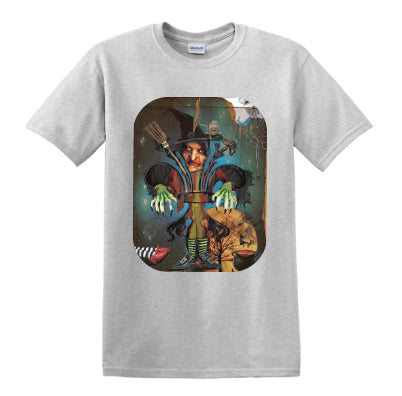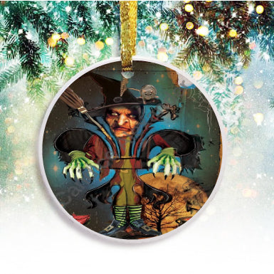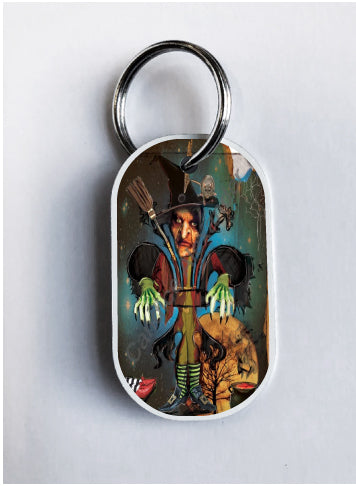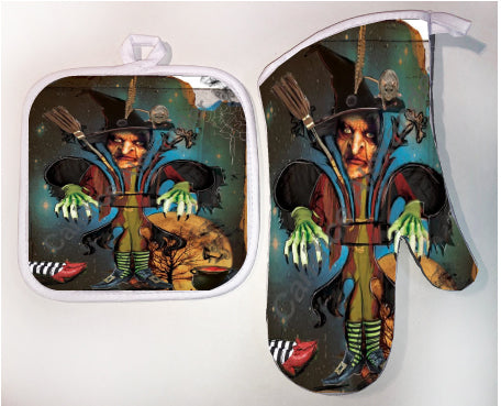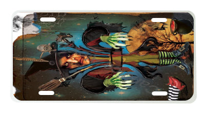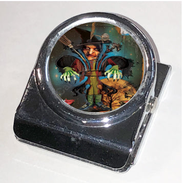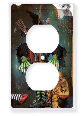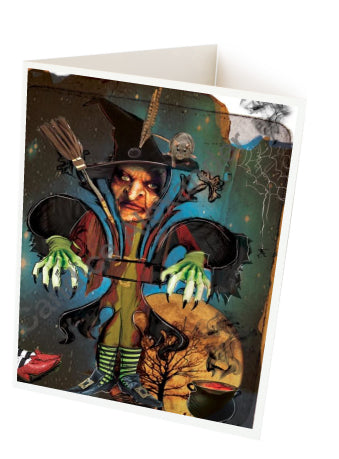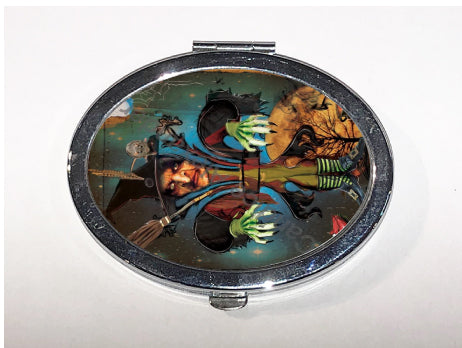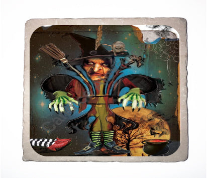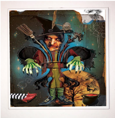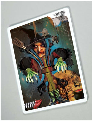 "Witch" is a fleur de lis design by Candice Alexander that features a spooky, worn paper background and a central fleur decorated to resemble the wicked witch of the west.